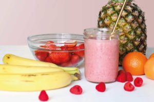 This bowl is sweet, refreshing and guilt-free! Ingredients:– 1/2 cup of frozen mango– 1/2 cup strawberries– 1/4 cup almond milk– 1 tbsp greek yogurt– 1 tsp flaxseed– Sprinkle of cinnamon